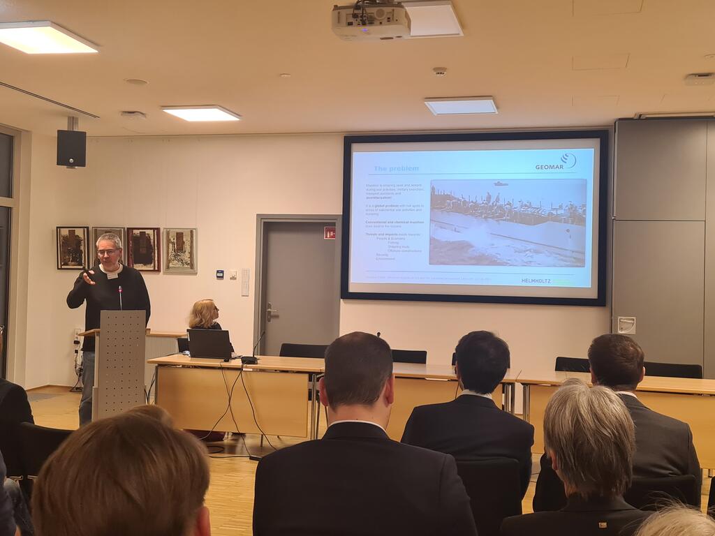On 17 February, MMinE-SwEEPER took part in the Dialogue Event: Munition Legacies at Sea and the European Perspective, hosted by the Permanent Representation of Germany to the EU in collaboration with the German Federal Ministry for the Environment, Nature Conservation, Nuclear Safety and Consumer Protection, as well as the Ministry of the Environment of Schleswig-Holstein. The event brought together policymakers, researchers, and civil society representatives to discuss the associated risks, European and national initiatives in this field, and the way forward. Project coordinator Jens Greinert delivered a keynote speech emphasising the importance of EU support for knowledge transfer from regional to global levels. He highlighted the strong connections being established between MMinE-SwEEPER and several other research projects in this area.